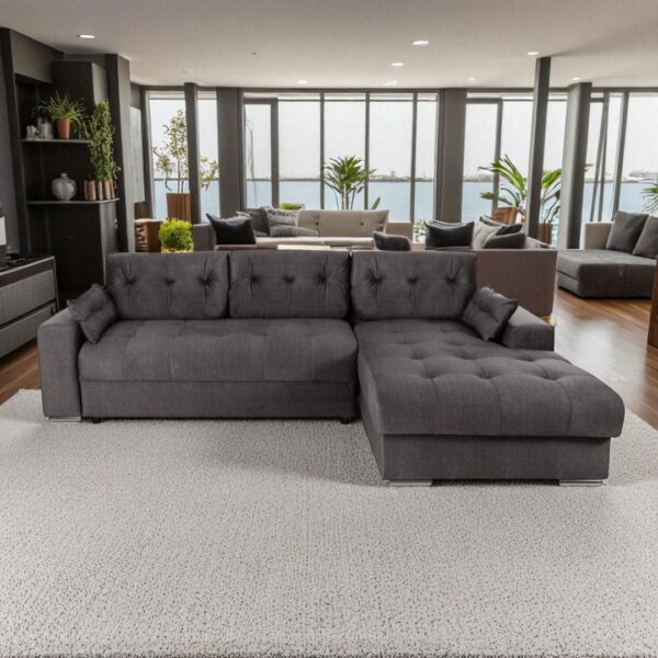 Σας παρουσιάζουμε τον COVEN, έναν υπέροχο μεγάλο καναπέ σε διαμόρφωση ΑΡΙΣΤΕΡΗΣ γωνίας (όπως τον κοιτάς) επενδυμένο με ποιοτικό ύφασμα σε ΕΚΡΟΥ χρώμα.