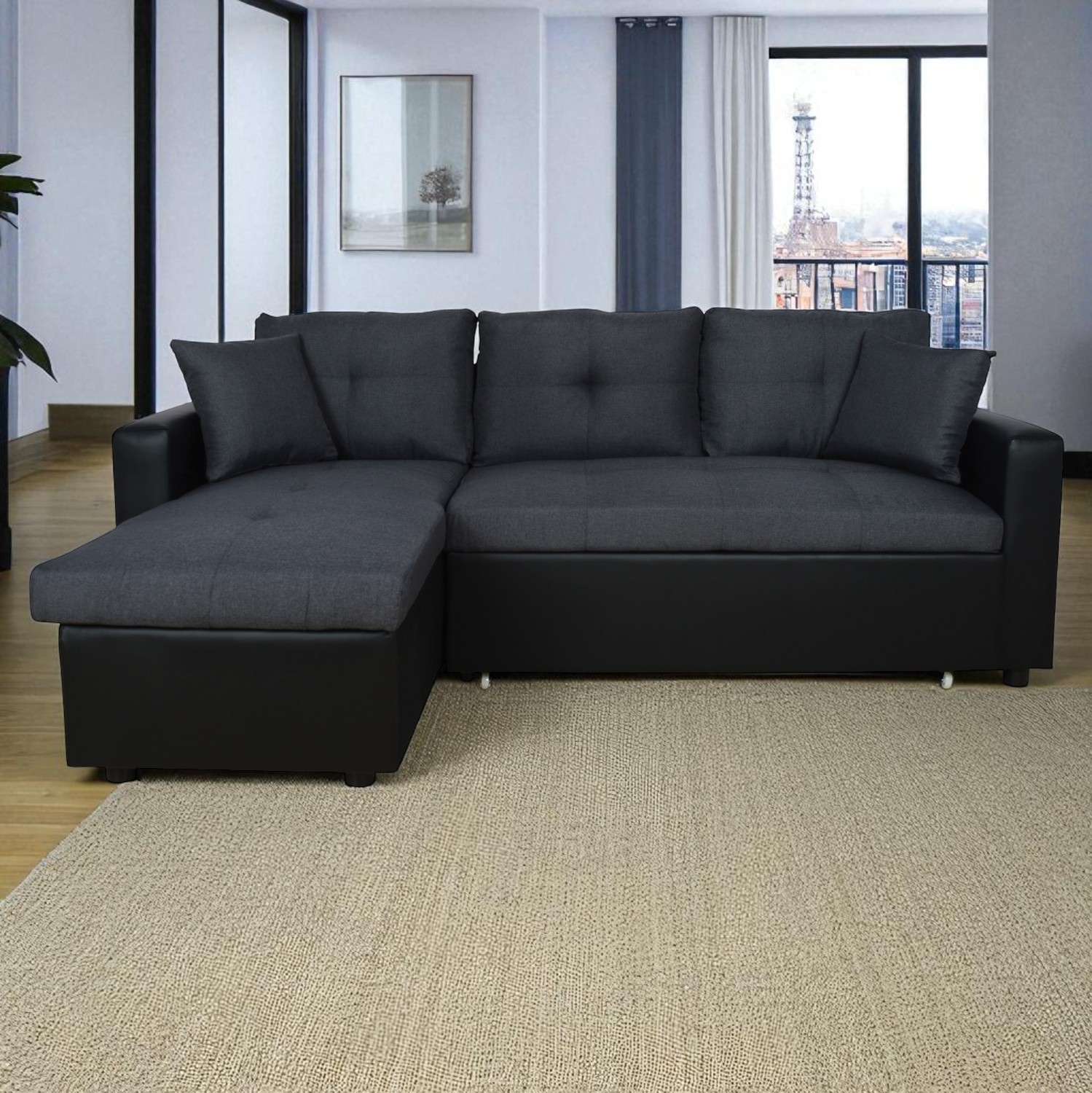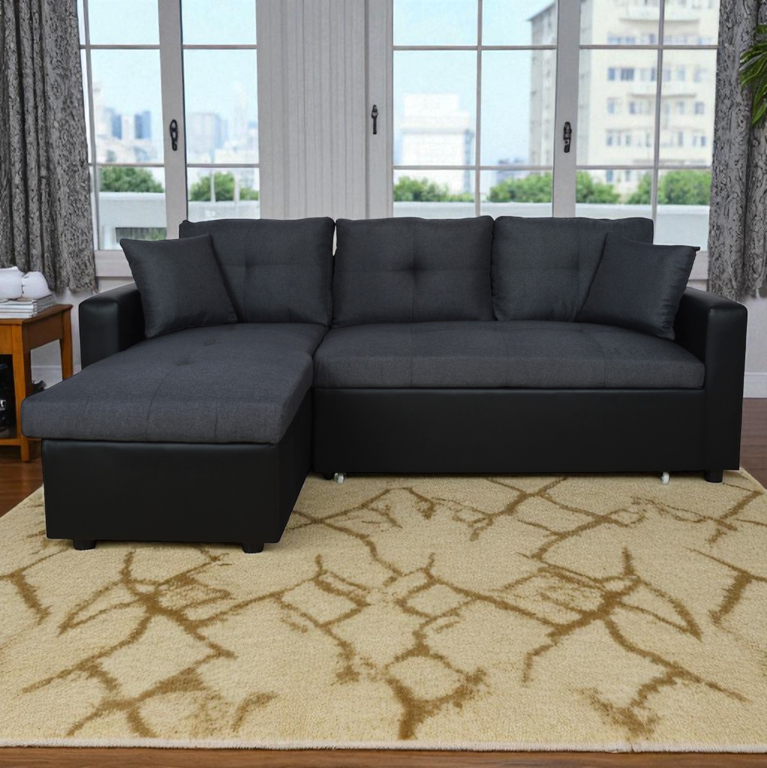 Ο καναπές γωνία διαθέτει συρόμενο τμήμα το οποίο χάρη στα υφασμάτινα χερούλια, μετατρέπεται με μία κίνηση σε άνετο κρεβάτι.