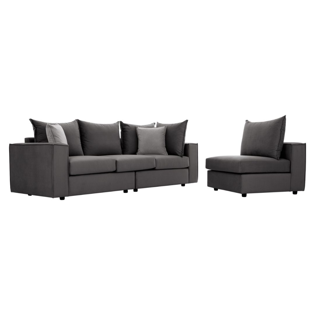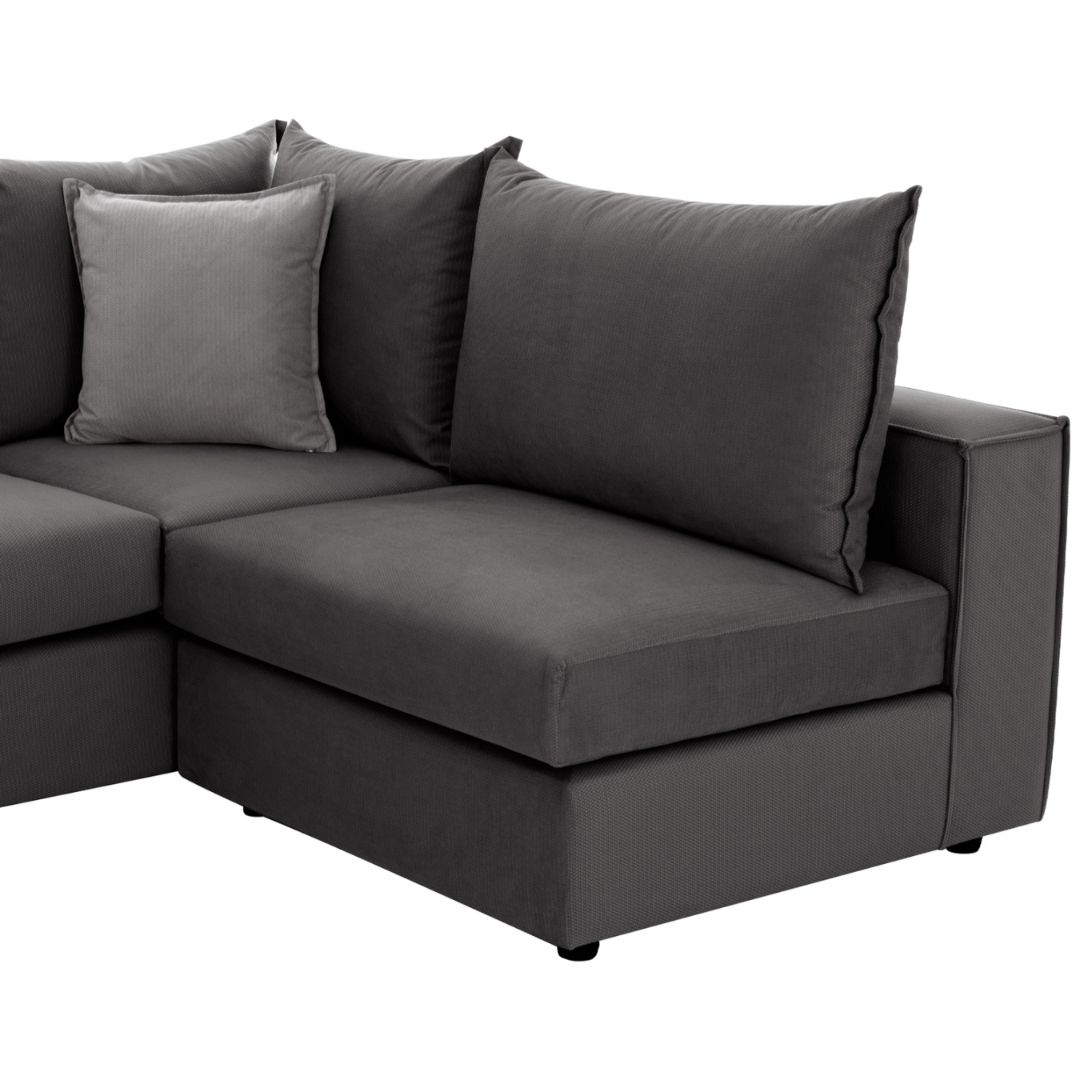 Το κομμάτι που δημιουργεί την γωνία, είναι ανεξάρτητο και συνδέεται με τον υπόλοιπο καναπέ αρμονικά με ύφασμα με «χρατς», ενώ, φυσικά, μπορεί άνετα να σταθεί και μόνο του ως μια αναπαυτική πολυθρόνα χωρίς μπράτσα και να δημιουργήσετε ένα σετ με τριθέσιο καναπέ και μια πολυθρόνα!