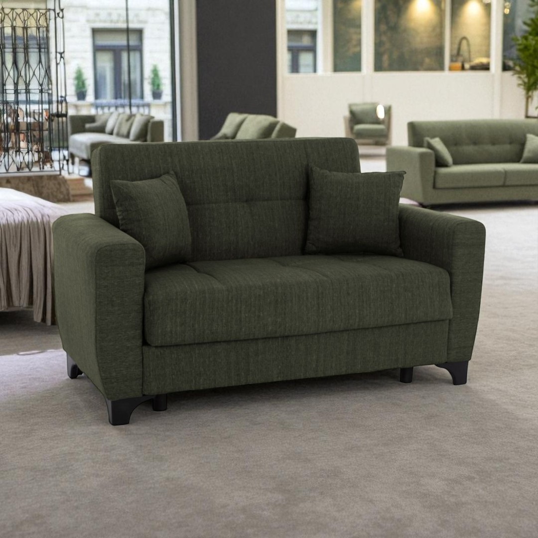 Ο ECHO D είναι ένας καναπές όμορφος και πολυτάλαντος. Η επένδυσή του είναι με εξαιρετικής ποιότητας σκούρο λαδί ύφασμα όπως και τα 2 διακοσμητικά μαξιλαράκια, ενώ τα μπράτσα είναι φαρδιά τόσο-όσο για να προσφέρουν άνεση και στήριξη. Η επένδυση έχει τεχνοτροπία καπιτονέ σε μεγάλα τετράγωνα τόσο στο άνετο κάθισμα όσο και στην χαρακτηριστικά ψηλή πλάτη.