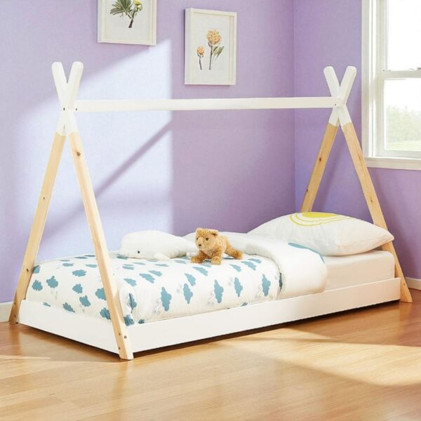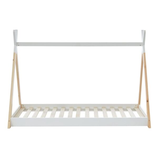 Το στρώμα τοποθετείται σε τάβλες κατασκευασμένες από ξυλεία κόντρα πλακέ. Ολόκληρο το κρεβάτι έχει σχήμα σπιτιού και μάλιστα αρκετά ψηλό, που θα δώσει μια ευχάριστη, «ζεστή», και παιχνιδιάρικη όψη σε κάθε παιδικό δωμάτιο.