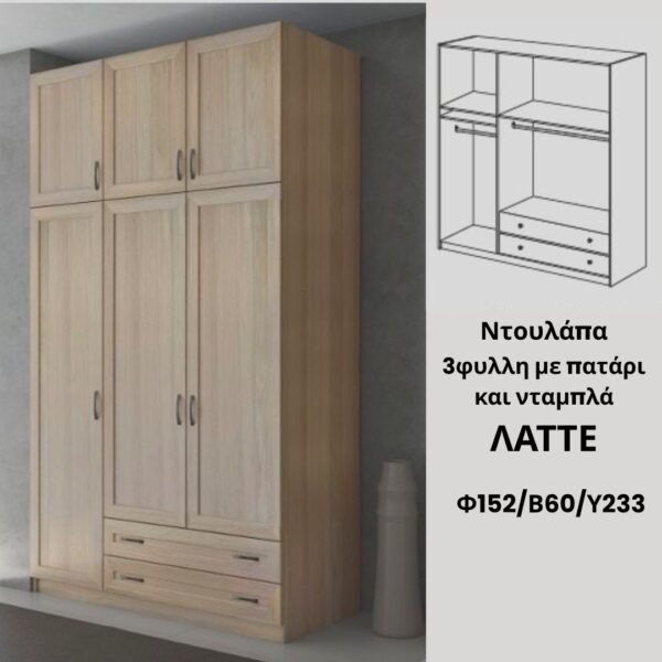 7. Ντουλάπα 6φυλλη με 6 Συρτάρια ΓΚΡΙ-ΣΟΝΑΜΑ 240x42x181Υεκ
