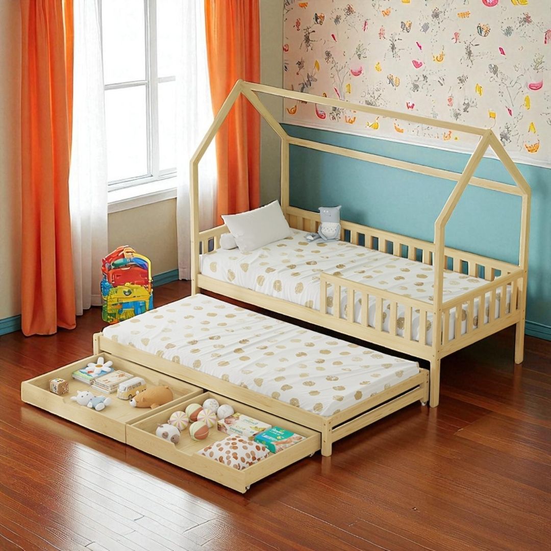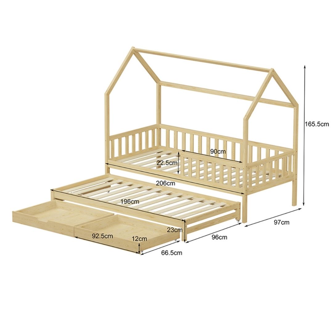 Το συγκεκριμένο διαθέτει και δεύτερο πρόσθετο κρεβάτι που αποθηκεύεται κάτω από κυρίως κρεβάτι, ενώ διαθέτει και δύο συρόμενα ρηχά συρτάρια κάτω από το πρόσθετο. Είναι σε διάσταση για μονό στρώμα 90×200 εκ το κυρίως κρεβάτι, και 90×190εκ το πρόσθετο, και αποτελεί μια άριστης ποιότητας, μοντέρνα και ασφαλή επιλογή για το παιδικό δωμάτιο μιας και διαθέτει ξύλινο κάγκελο περιμετρικά.