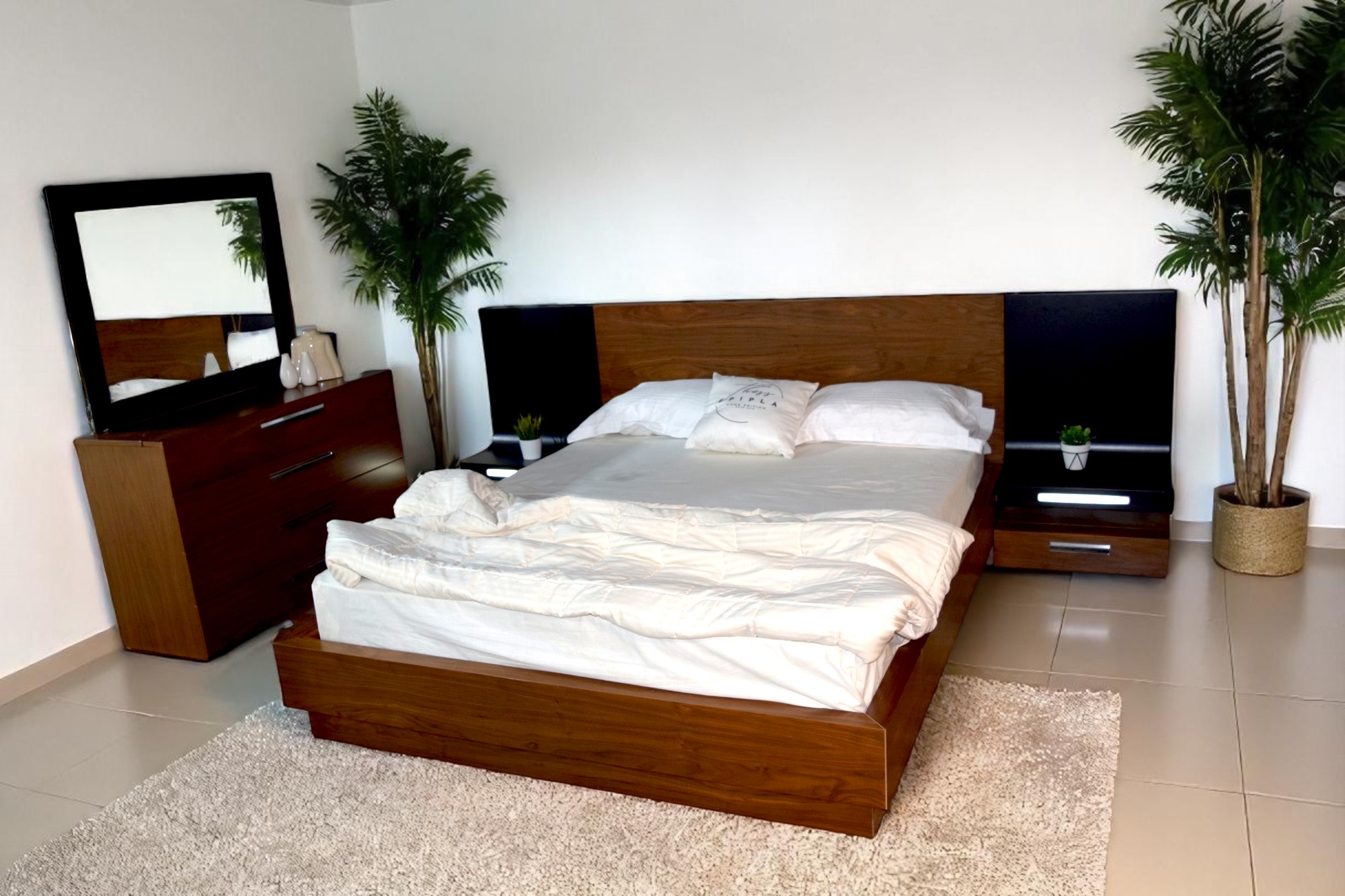 Το σετ αποτελείται από το κρεβάτι, δύο κομοδίνα και μία συρταριέρα κι έχει κατασκευαστεί για στρώμα 150×200.